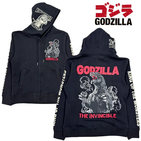 GZP-001 ゴジラ GODZILLA 刺繍プリント 裏毛パーカー《ブラック》