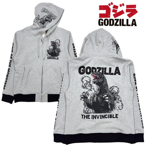 GZP-001 ゴジラ GODZILLA 刺繍プリント 裏毛パーカー《グレー》