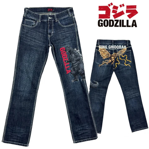 世界中の誰もが知っている特撮怪獣映画「GODZILLA(ゴジラ)」ジーンズです♪フロントはゴジラの全身を刺繍した迫力満点のデザイン、バックはキングギドラを豪華絢爛なフルカラー刺繍で仕上げました。