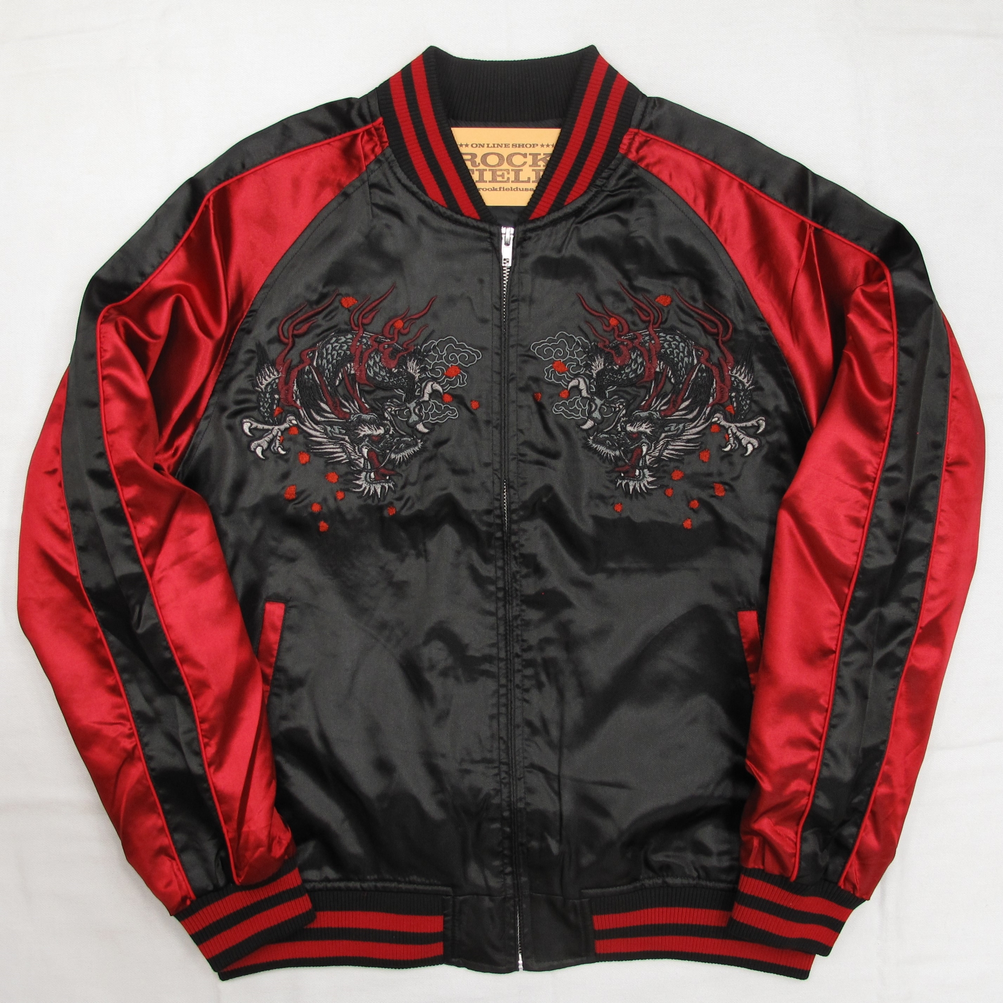 MNSL-075 サテン 炎雲龍 スカジャン《ブラック×レッド》
