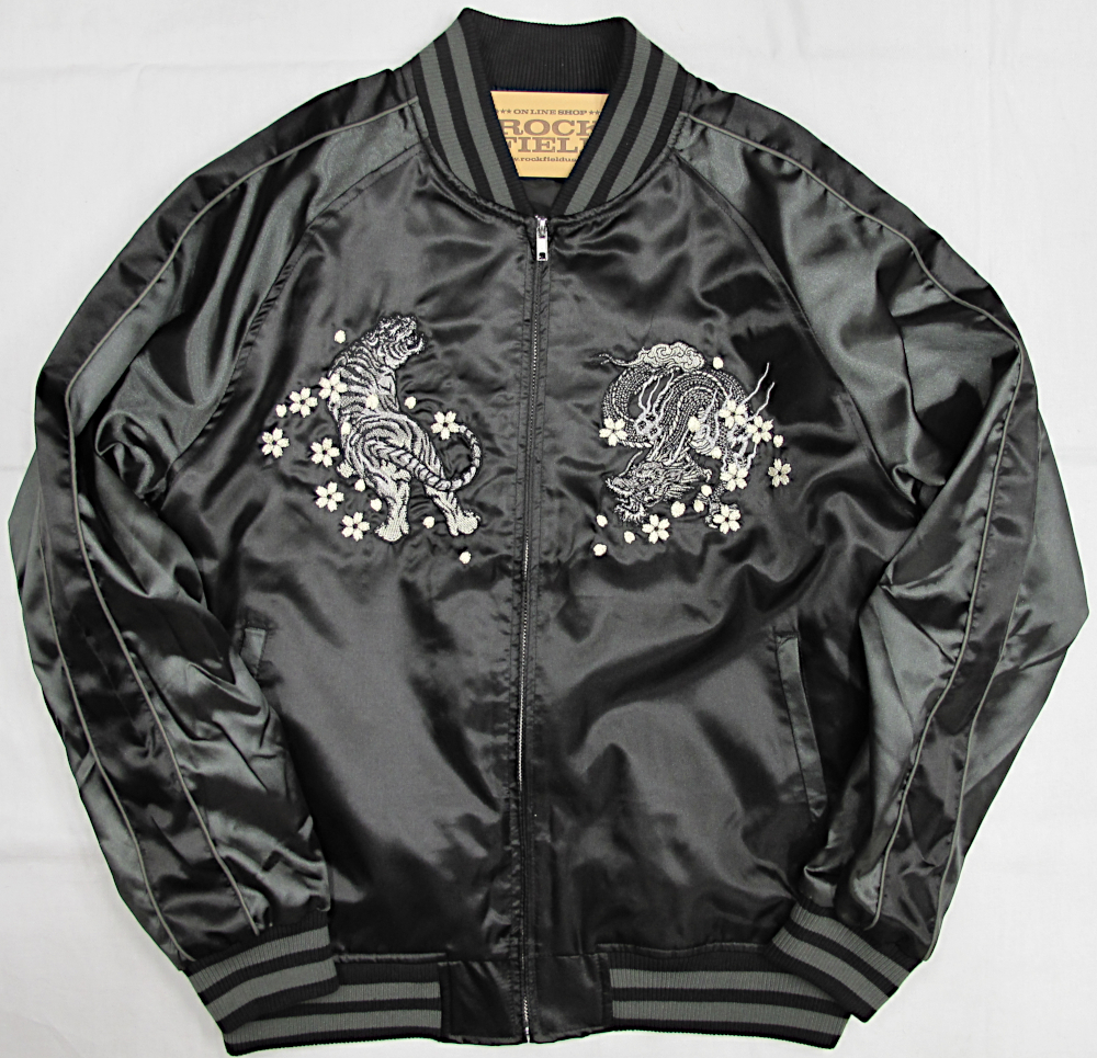 MNSL-019 サテン 龍虎菊桜 スカジャン《ブラック×チャコール》