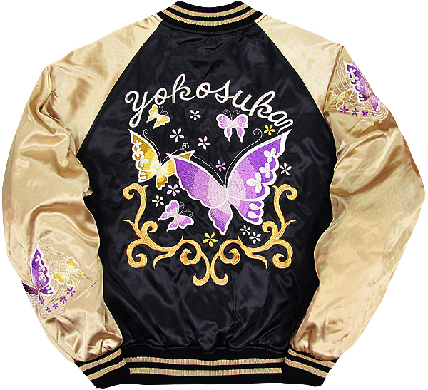 MNSL-019 サテン 龍虎菊桜 スカジャン《ブラック×ゴールド》