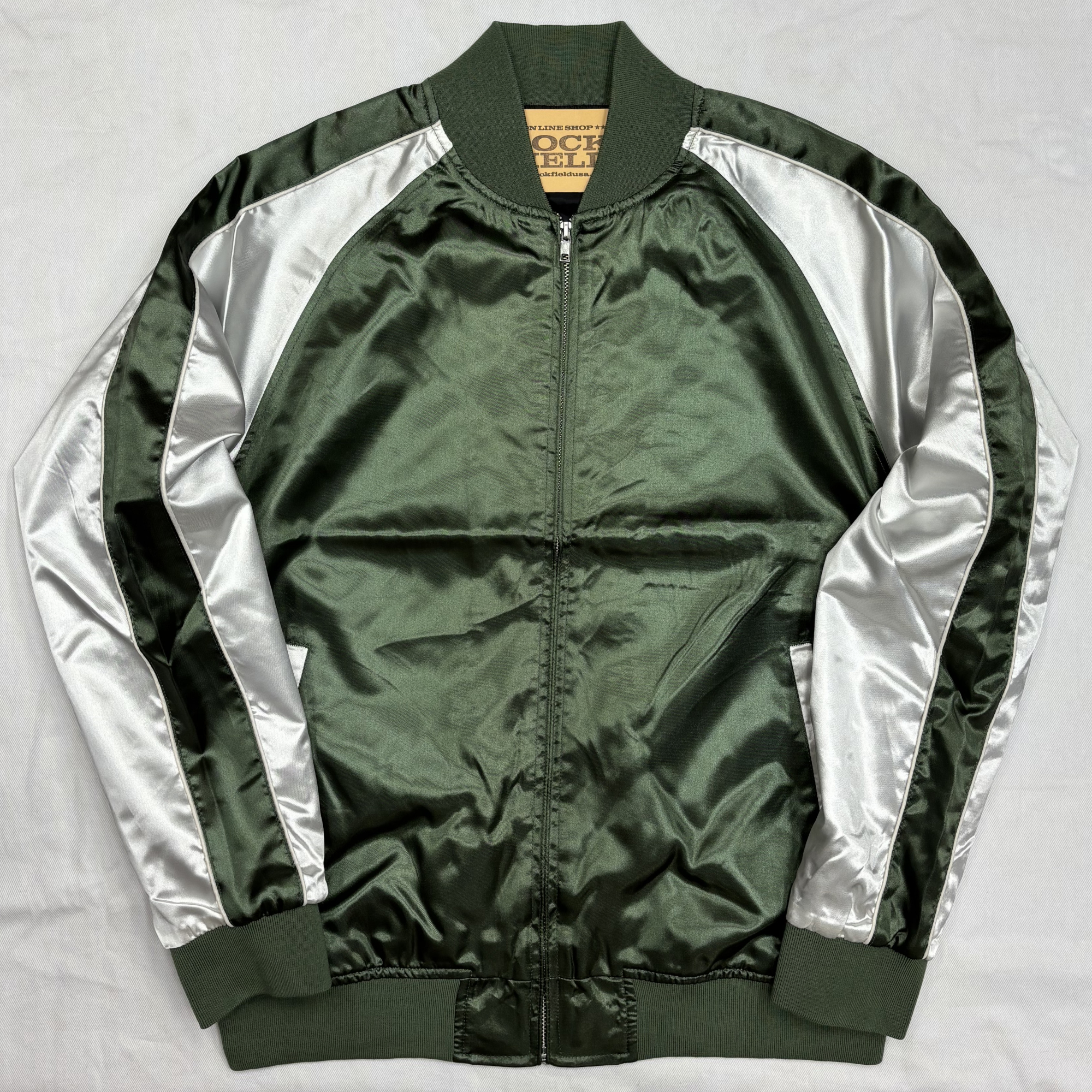 BRSL-000 サテン 無地 スカジャン(中綿抜き)《ダークグリーン×ホワイトシルバー》