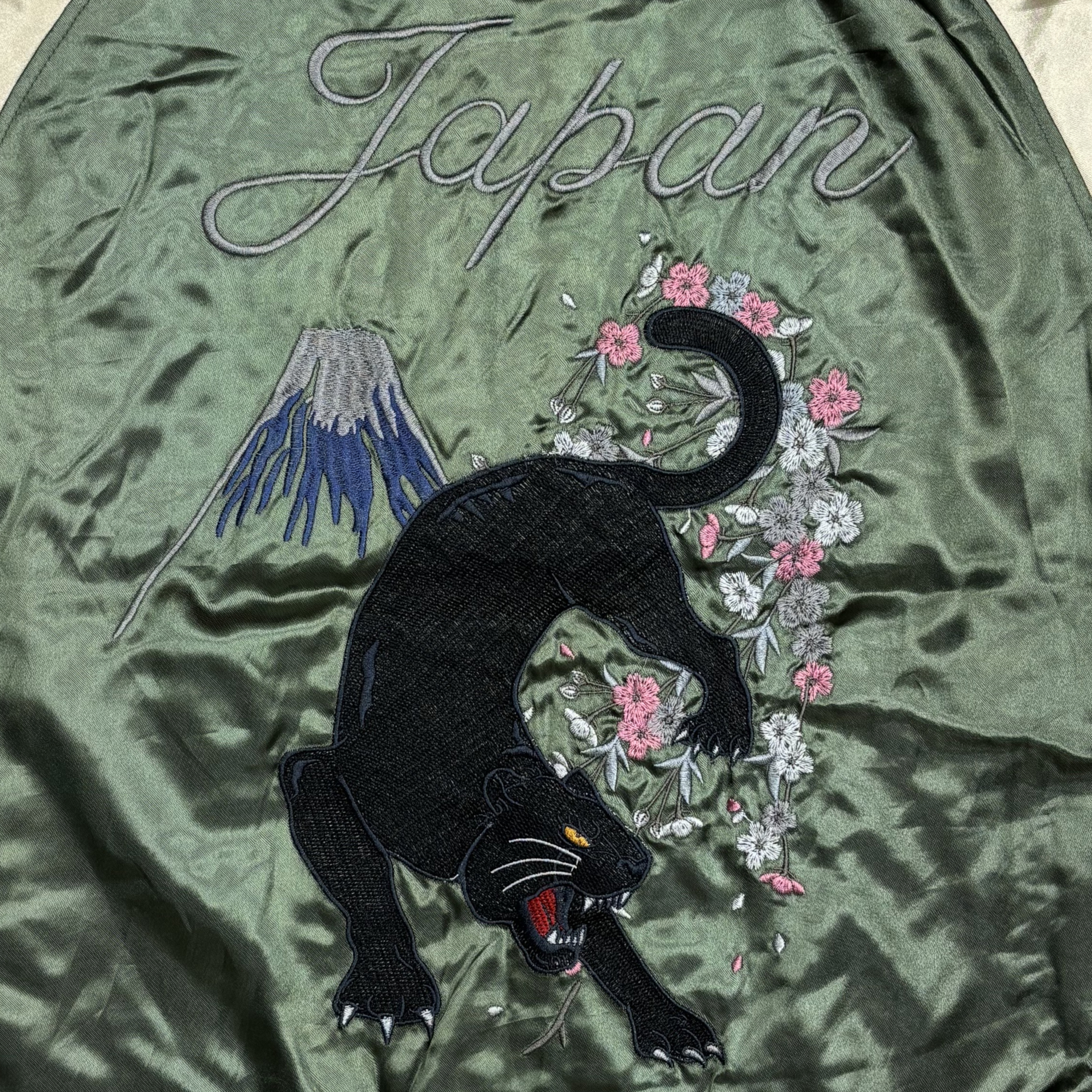 BRSL-010 サテン 黒豹 スカジャン(中綿あり)《ダークグリーン×ベージュ》