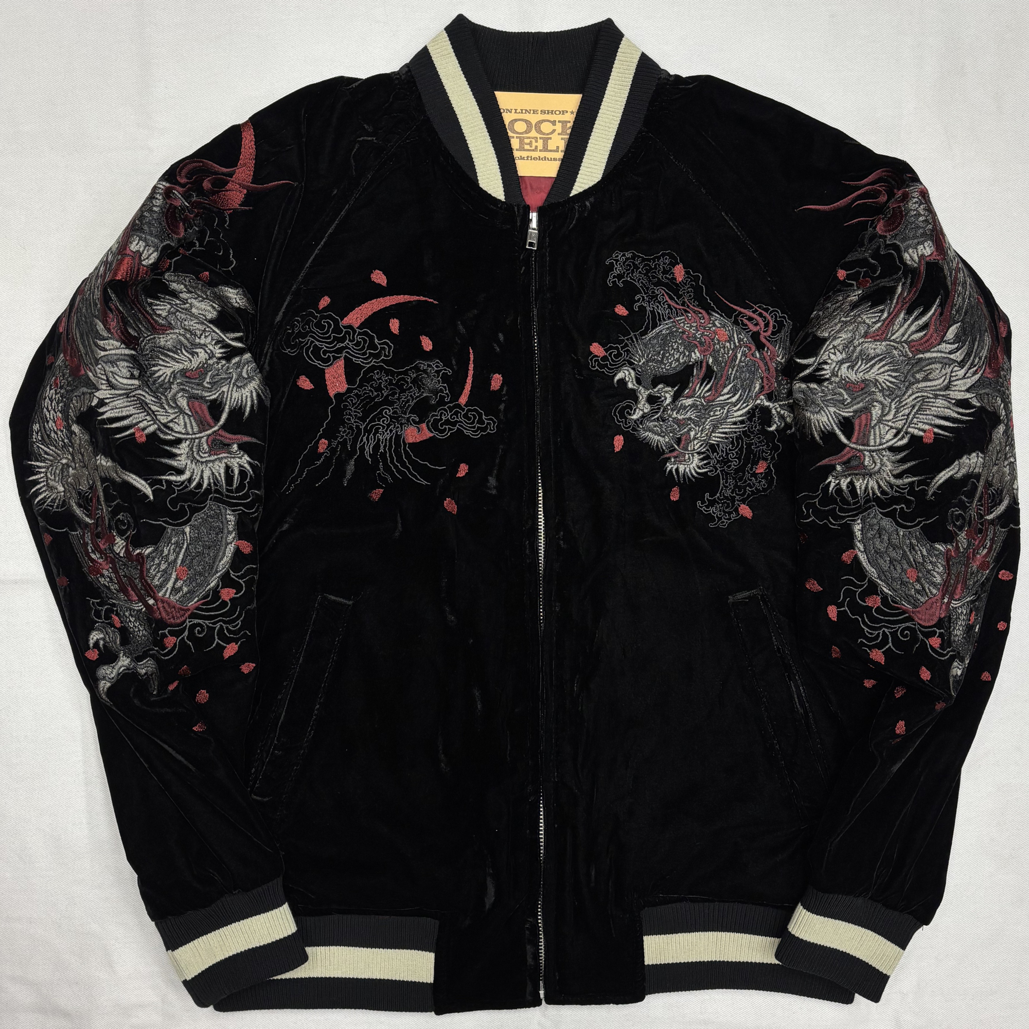 MNSL-084 別珍 月からみ龍 スカジャン(シルバー刺繍)《ブラック×ブラック》