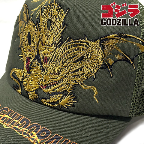 GZCAP-002 キングギドラ 刺繍プリント メッシュキャップ《カーキ》