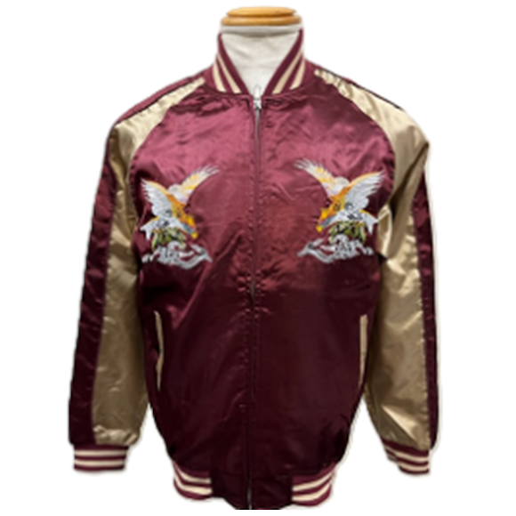 BRSL-001 サテン イーグル スカジャン(中綿あり)《ワインレッド×ベージュ》