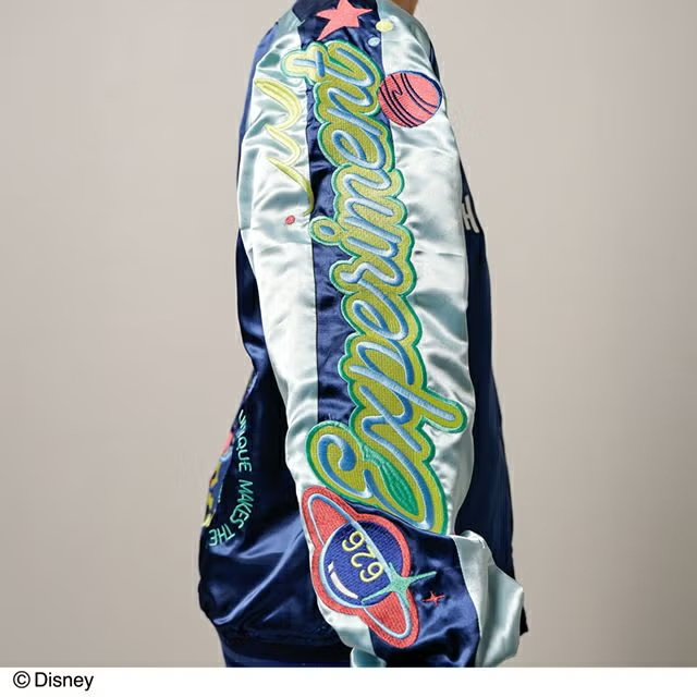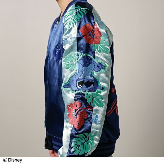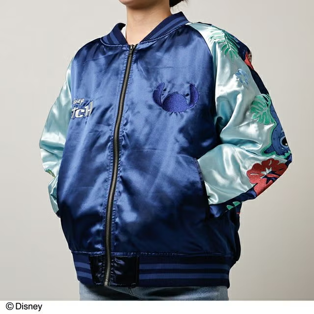 世界中で大人気の「Disney」スカジャンが登場♪ブルー×シルバーのカラーリングがキャッチーなファン必見のアイテム。フロントにスティッチロゴ、腕部にスティッチとハイビスカスが施され、バックにはスティッチが豪華な刺繍で大胆に描かれています。高品質な素材を使用し、快適な着心地を実現。日常のカジュアルな装いに特別なアクセントを加えるアイテム。【中綿抜きモデル】