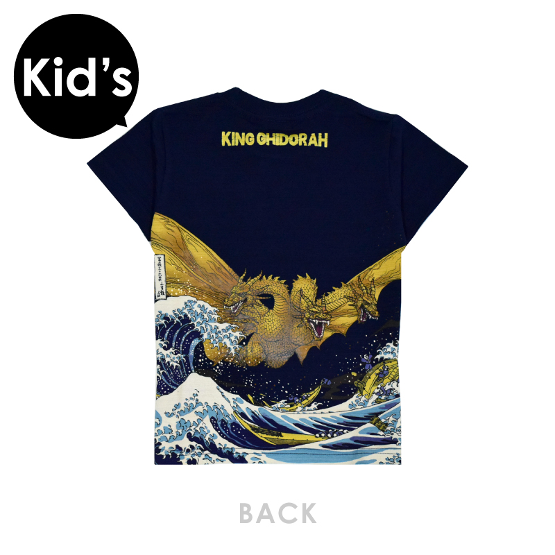 GZTK-004 ゴジラ GODZILLA 富嶽三十六景三首龍ノ図 キッズTシャツ《ネイビー》