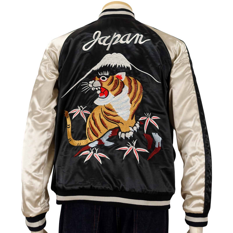 HGSK-044 虎刺繍/別珍 刺繍 リバーシブル スカジャン《ブラック×ベージュ》《ブラック×ブラック》