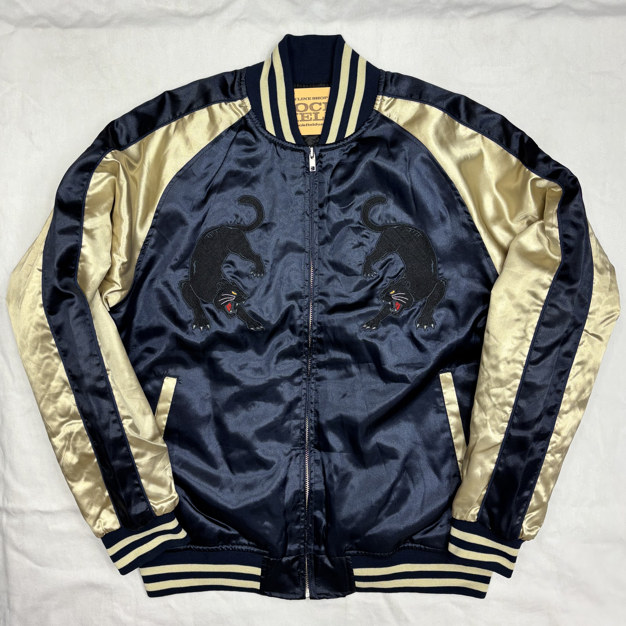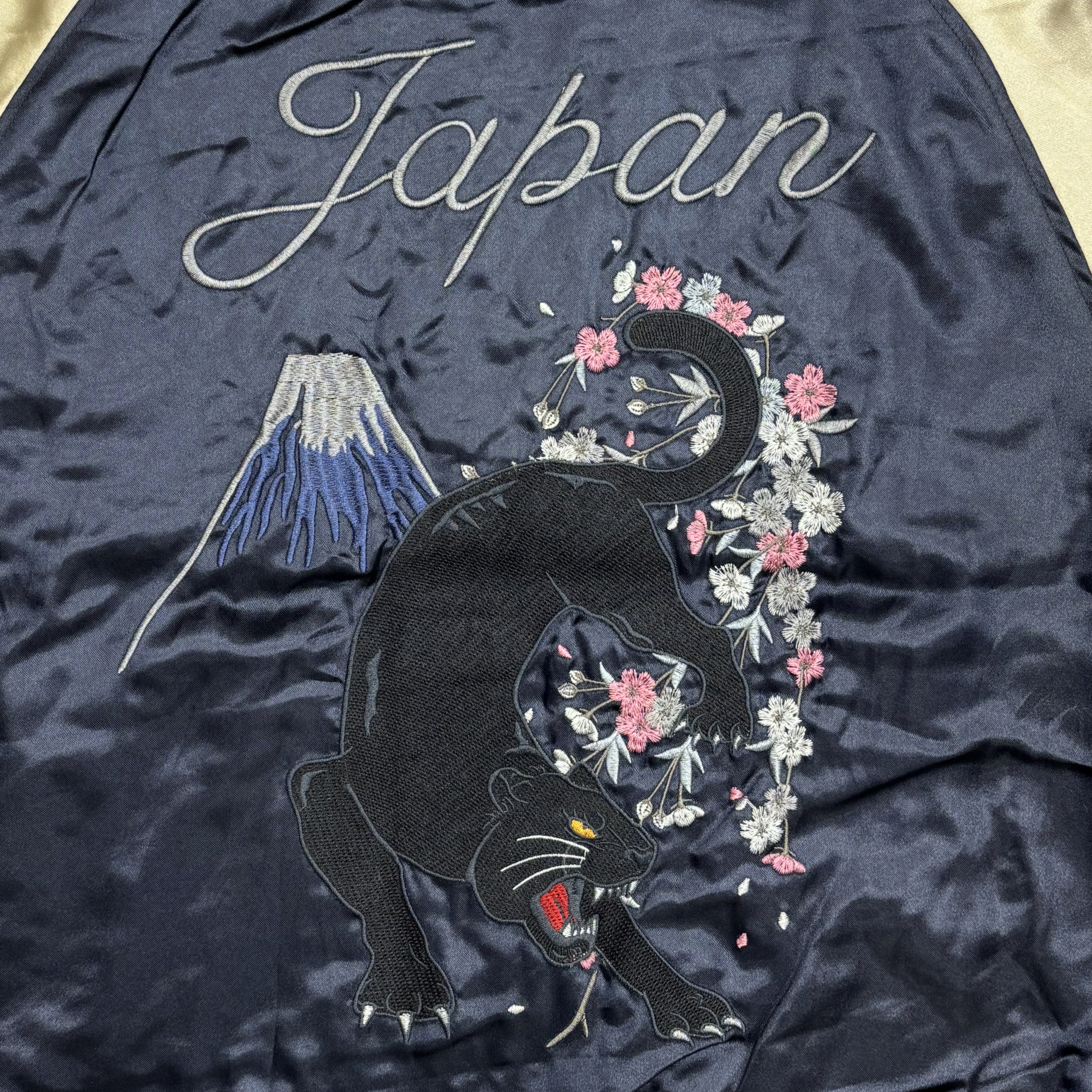 BRSL-010 サテン 黒豹 スカジャン(中綿あり)《ネイビー×ベージュ》