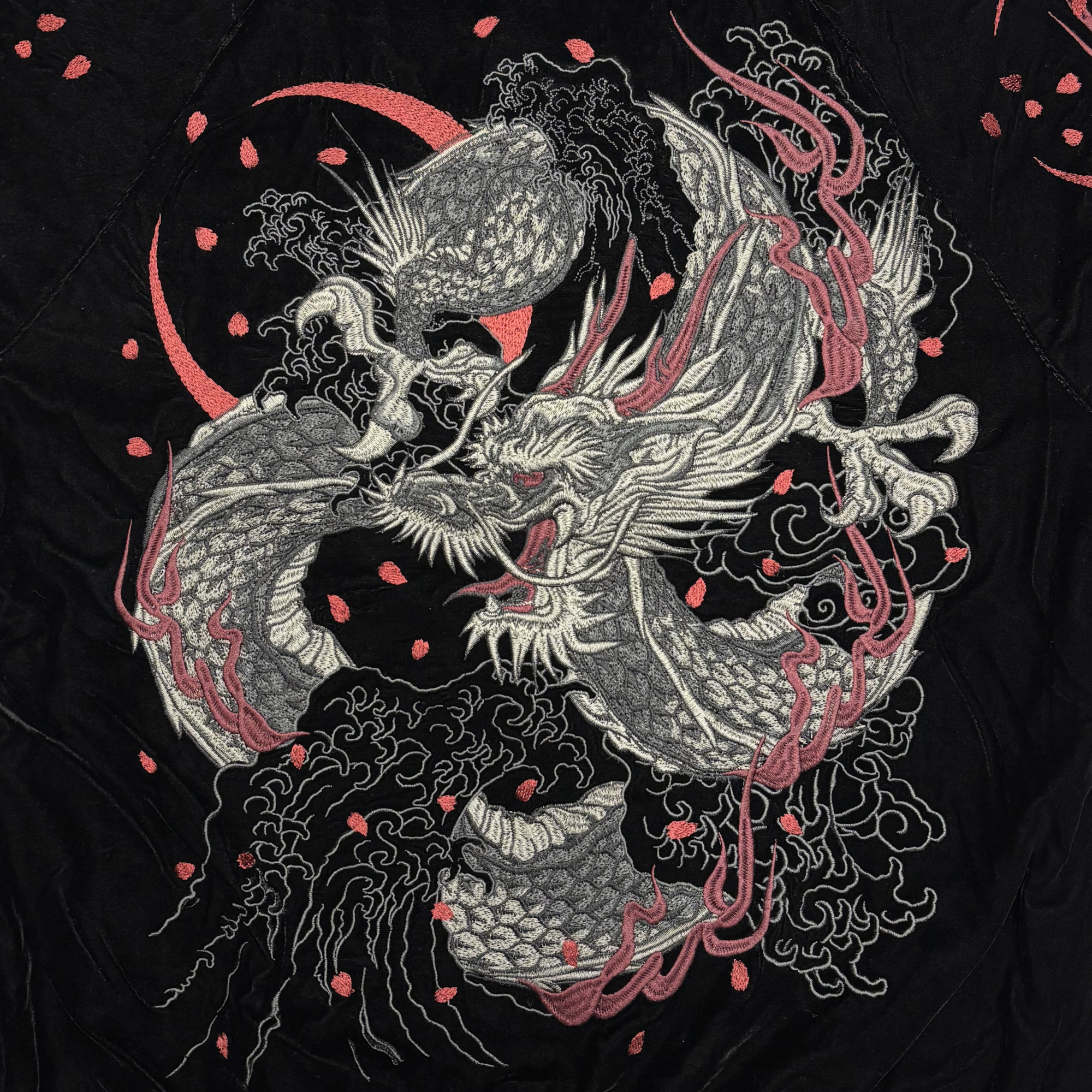 MNSL-084 別珍 月からみ龍 スカジャン(シルバー刺繍)《ブラック×ブラック》