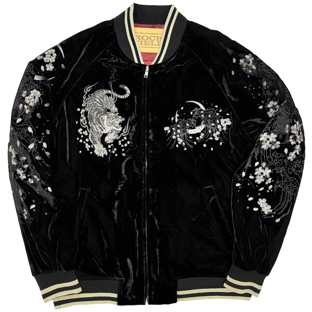 MNSL-085 別珍 月炎虎 スカジャン(シルバー刺繍)《ブラック×ブラック》