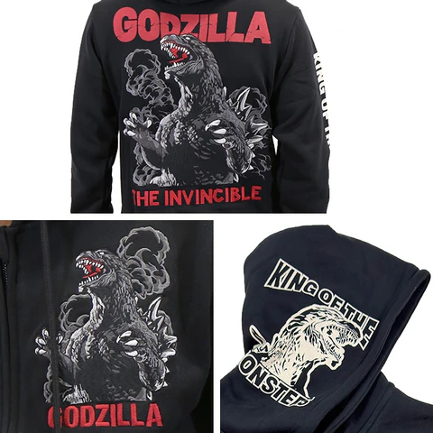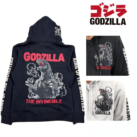 GZP-001 ゴジラ GODZILLA 刺繍プリント 裏毛パーカー《ブラック》