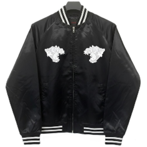 BRSL-015 サテン 白虎 スカジャン(中綿あり)《ブラック×ブラック》