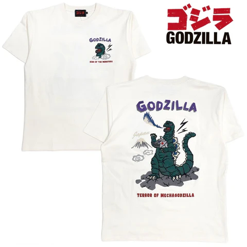 GZT-013 ゴジラ GODZILLA 刺繍 天竺 Tシャツ《ホワイト》