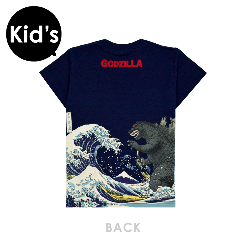 GZTK-002 ゴジラ GODZILLA 富嶽三十六景大怪獣ノ図 キッズTシャツ《ネイビー》