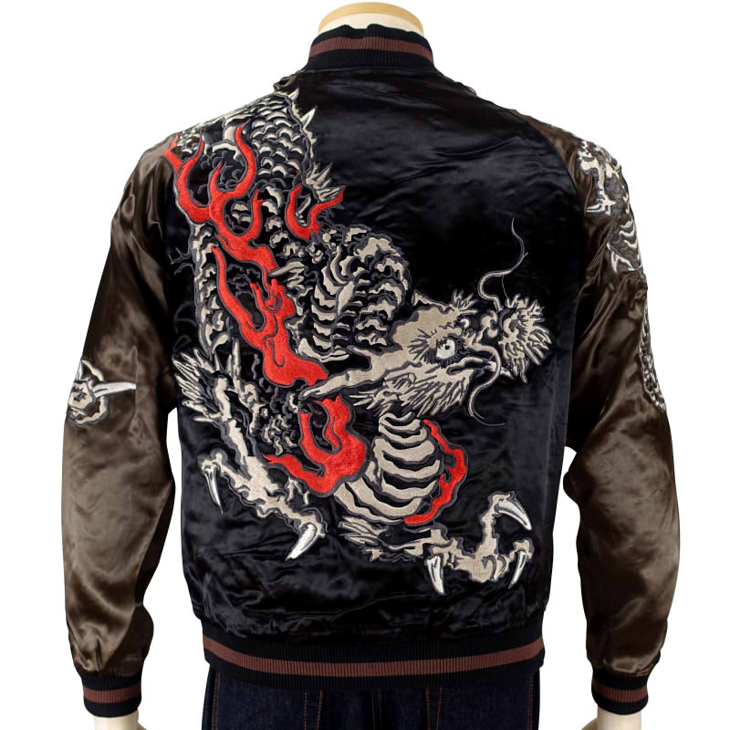 HGSK-034 炎龍/黒鳳凰 刺繍 リバーシブル スカジャン《ブラック×チャコール》《ブラック×ベージュ》