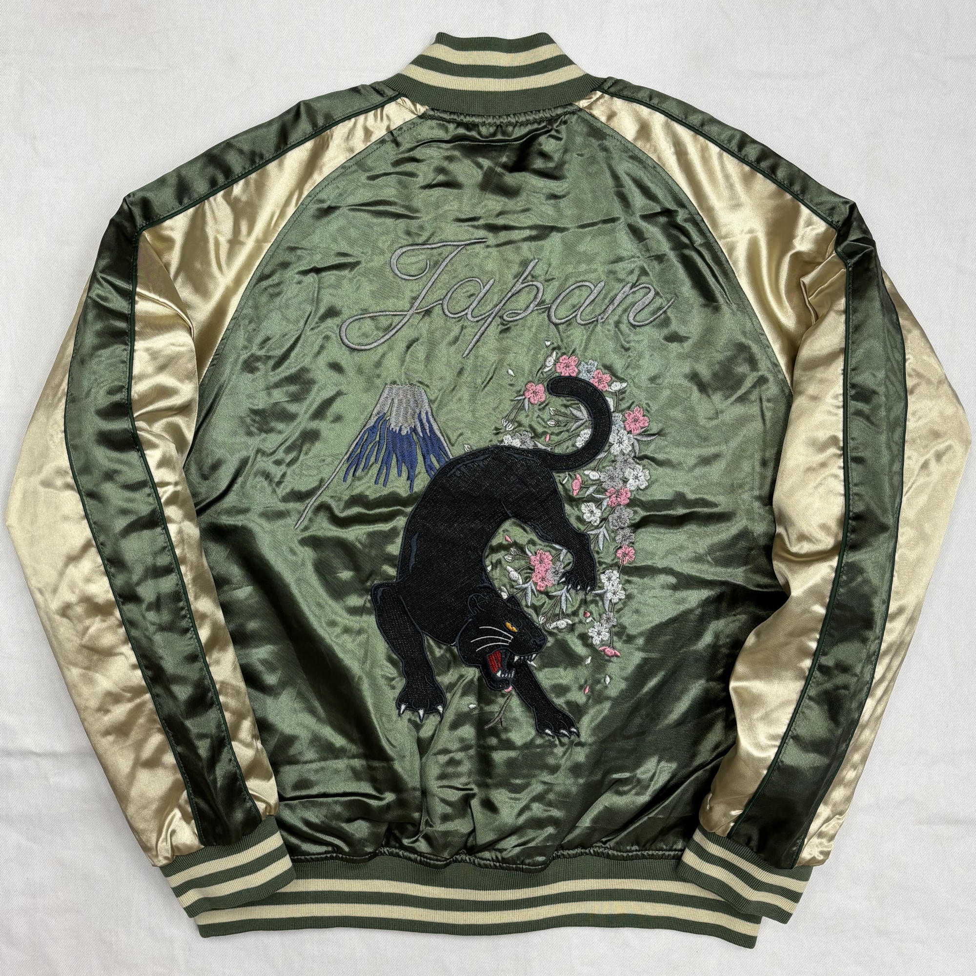 BRSL-010 サテン 黒豹 スカジャン(中綿あり)《ダークグリーン×ベージュ》