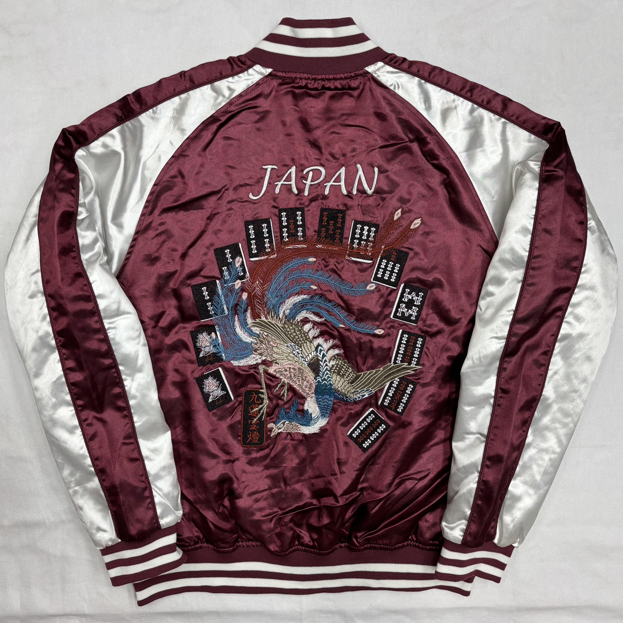 BRSL-011 サテン 孔雀 スカジャン(中綿あり)《ワインレッド×ホワイトシルバー》